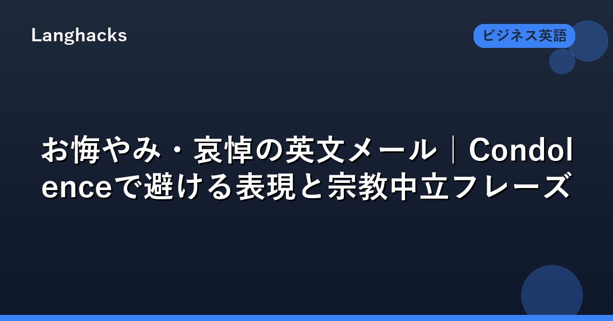 Condolence Emailは「短い・誠実・宗教中立」の3原則です。定型の中立フレーズを覚えておけば、失敗のリスクは最小化できます。