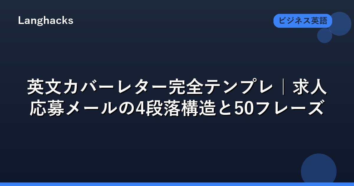 本記事ではカバーレターを「Hook / Fit / Why / CTA」の4段落で設計する型と、各段で使える50フレーズをまとめます。