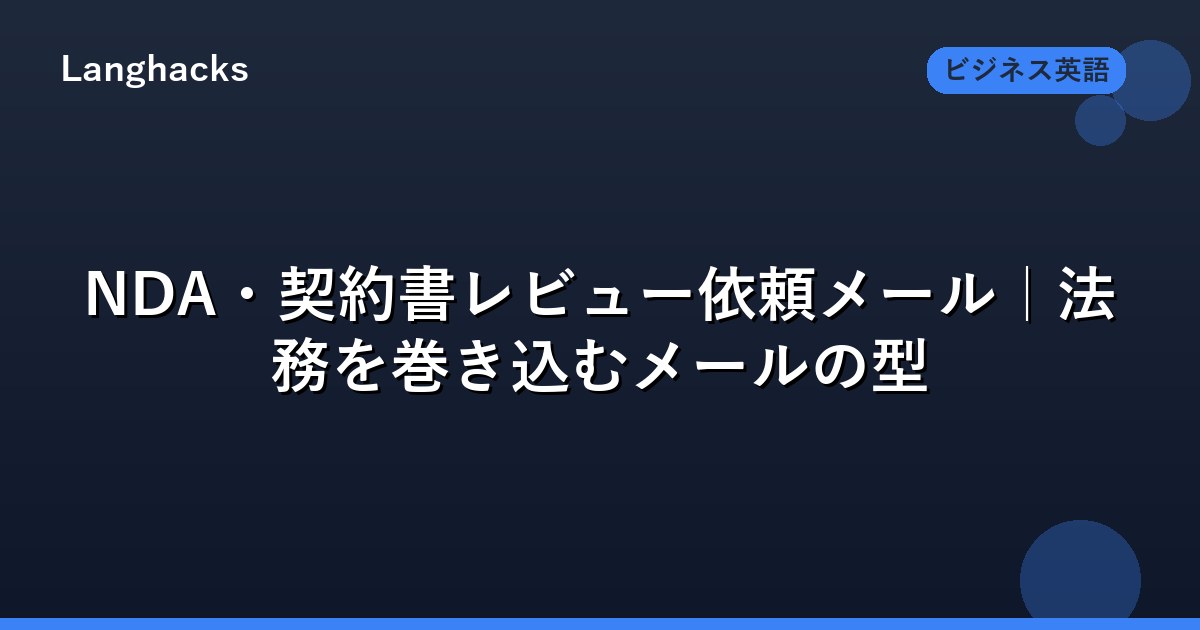 「なぜこのNDAを送るか」を1文で説明することで、相手の意思決定が速まります。