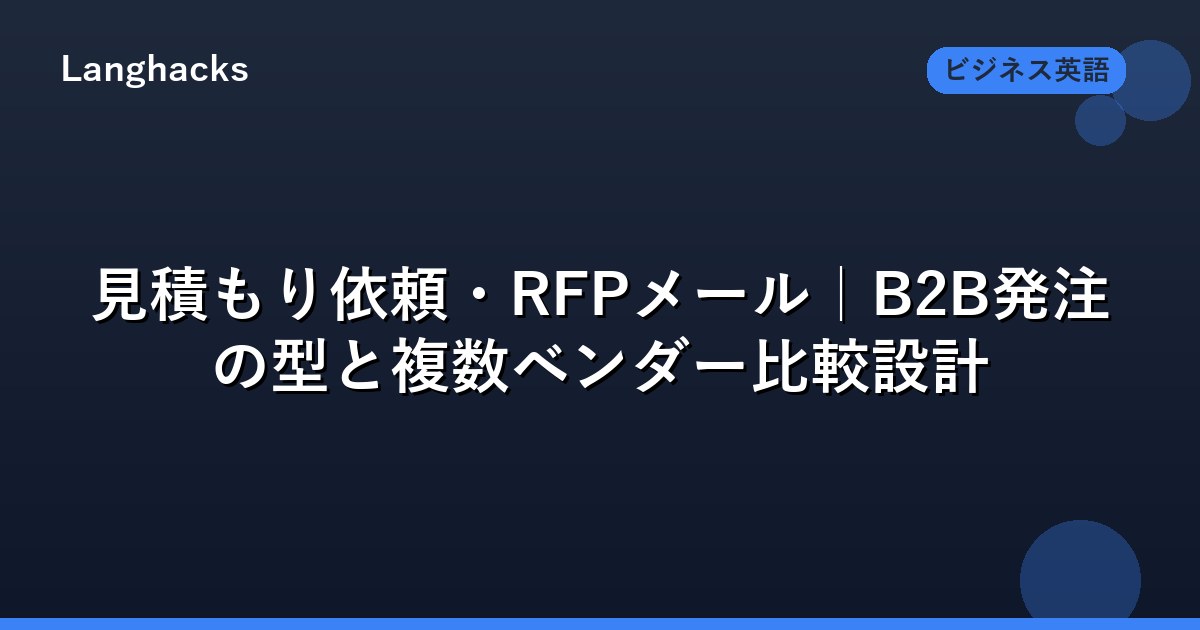 この記事では英文RFP/RFQメールの設計と、複数ベンダー比較の倫理、Q&A期間の運用まで解説します。