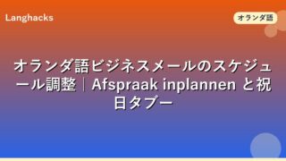 オランダ語ビジネスメールのスケジュール調整完全ガイド。Afspraak inplannen5シーンとKoningsdag・Sinterklaas祝日タブー、zomerperiode夏期休暇の特殊事情、リスケ・キャンセル・Nationale Feestdagまで網羅します。