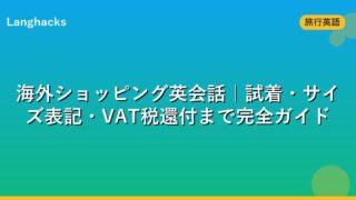 海外ショッピングで使える英会話を試着・サイズ表記・値切り・VAT税還付の流れ別に解説。米欧サイズ換算表、ブランド店NG英語、空港免税手続き、配送依頼、SNS映え品見つけ方、返品交換交渉まで、買物トラブルを回避し旅行記録を充実させる実用ガイド集。