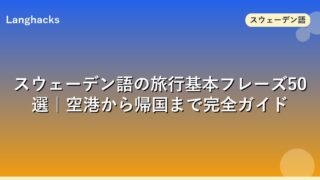 スウェーデン語の旅行基本フレーズ50選を空港・ホテル・レストラン・ショッピング・交通・トラブル別に網羅。Lagom・Fika・Jantelagen文化、Midsommar・Lucia祝祭、å/ä/ö表記、北欧的距離感まで、日本人初海外でも詰まらない実用ガイド集。