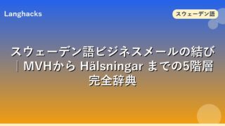 スウェーデン語メールで断る・辞退するフレーズ15選をTyvärr・Det går tyvärr inte・Vi avstårで整理。クッション+本体+理由+代替の4段構造と依頼断り・オファー辞退・日程断り・見積断り・勧誘断りの5シーン別運用を辞典化します。