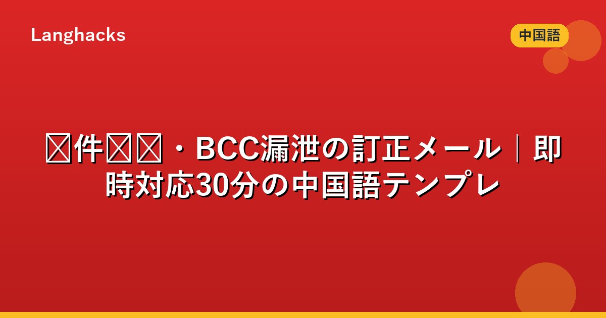 邮件误发・BCC漏泄の訂正メール|即時対応30分の中国語テンプレ