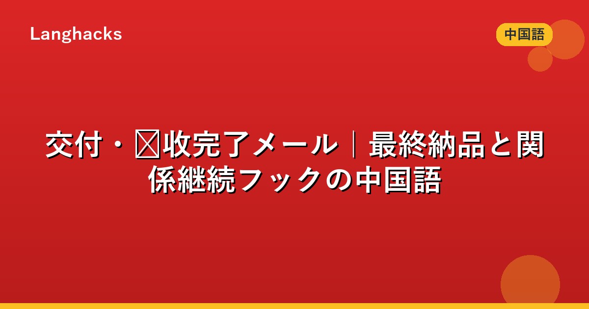 交付メールは「交付物・验收・保修・续约提案」の4段構造で、最後の「关系継続フック」が次の受注を生みます。中国B2Bで下一单を獲得する鍵はここにあります。