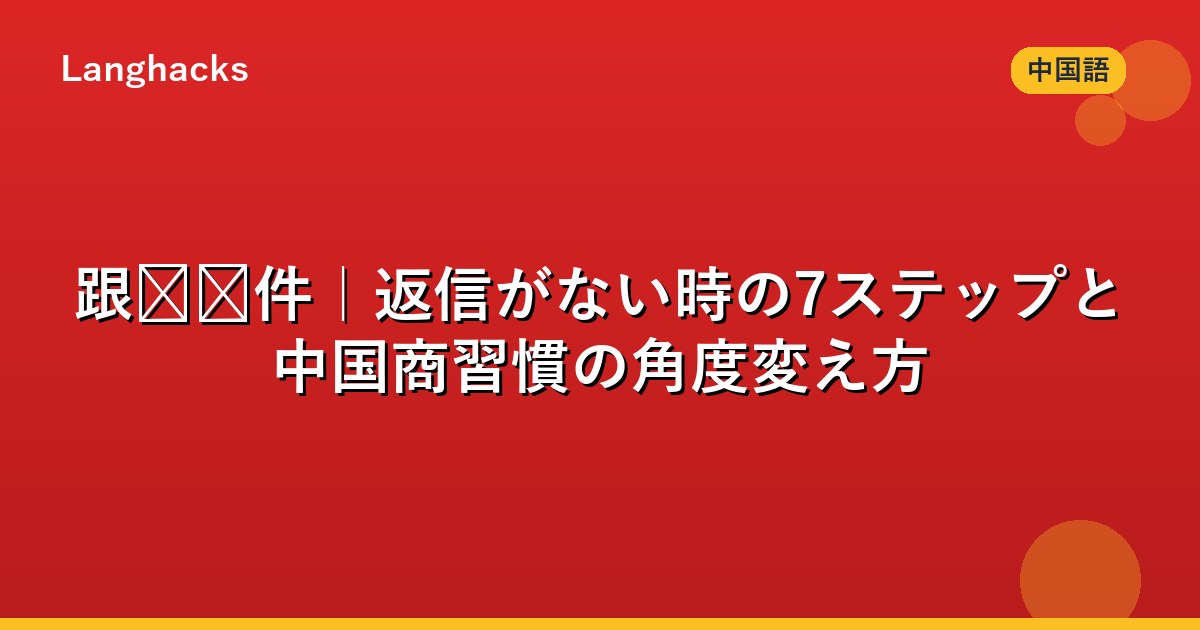 本記事では第3日・第7日・第14日の7ステップを整理し、中国B2B特有の春节・国慶配慮や決裁者変更戦略まで網羅します。