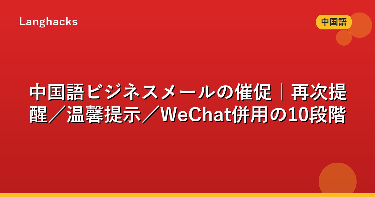 中国語ビジネスメールの催促は、10段階のトーンで相手格式と経過日数に応じて調整します。