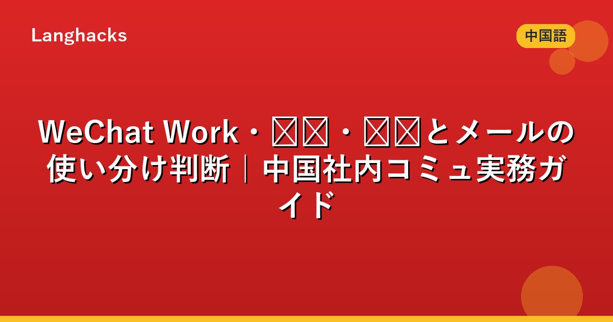 WeChat Work・钉钉・飞书とメールの使い分け判断|中国社内コミュ実務ガイド