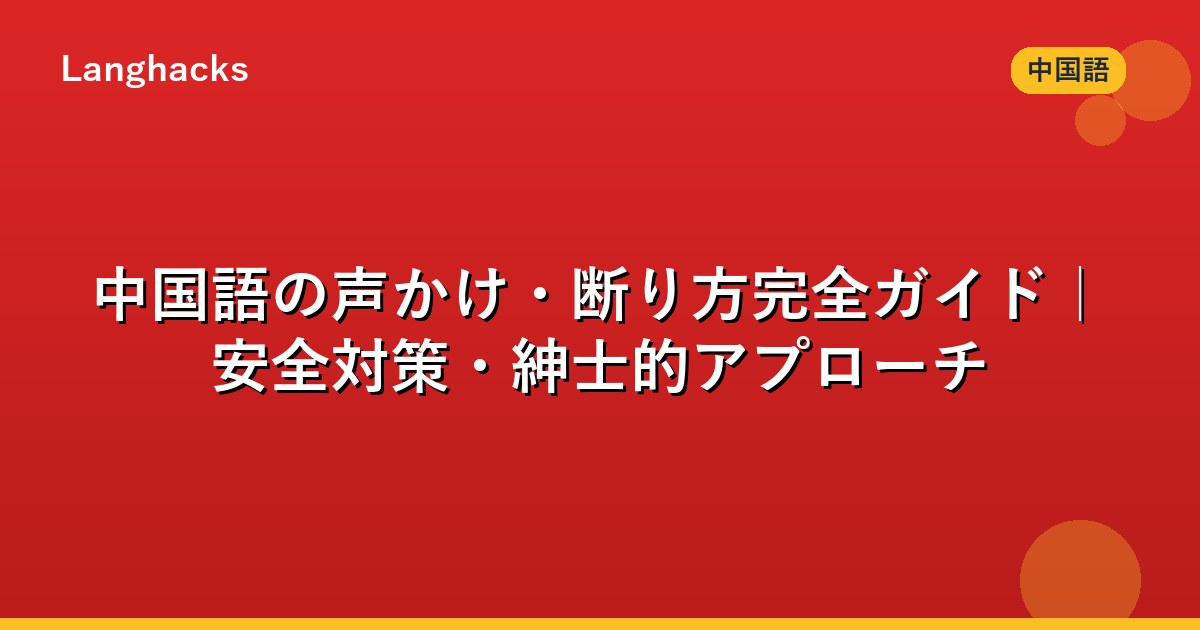 本記事では、中国本土・台湾・香港の声かけ文化、上手な断り方、興味あるときの返し方、安全対策チェックリスト、紳士的アプローチを中国語例文付きで解説します。
