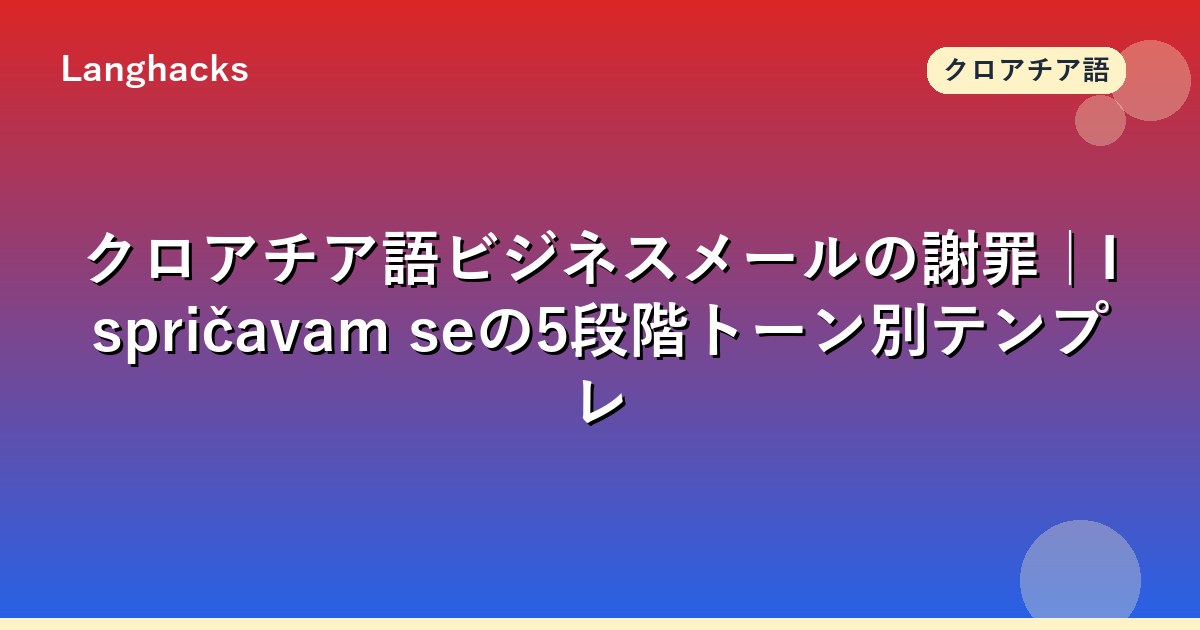 関連記事として返信5タイプと催促10段階とクロアチア語ビジネスメール総論を併読すると、謝罪から関係修復までの全体設計が完成します。