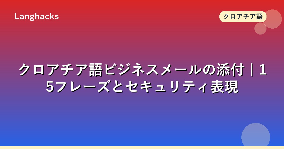 関連記事として依頼20フレーズと謝罪5段階とクロアチア語ビジネスメール総論を併読すると、添付からセキュリティまでの一連が整います。