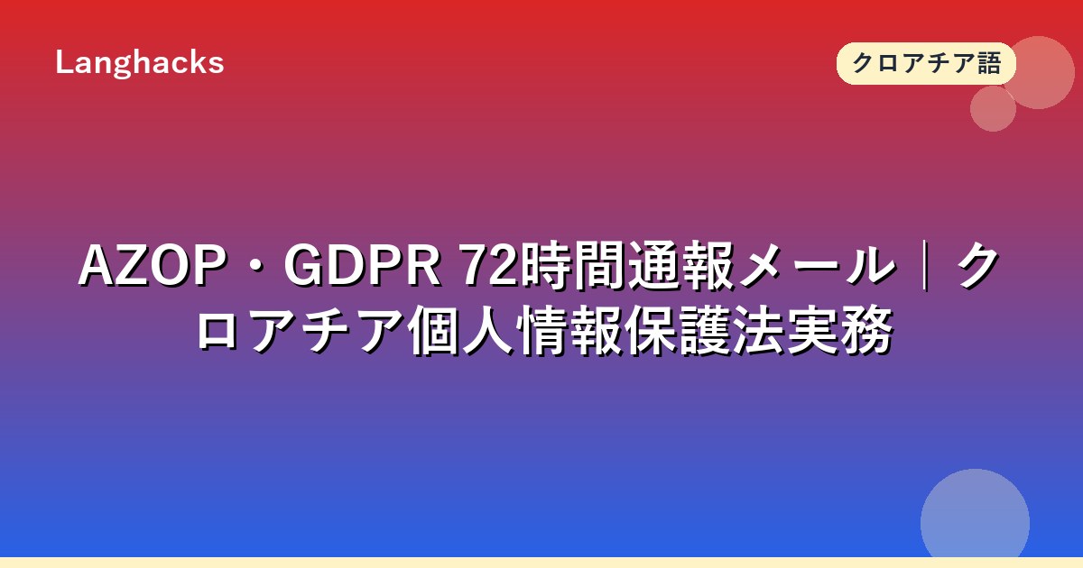 AZOP・GDPR 72時間通報メールはクロアチア進出企業必読の独立トピックです。