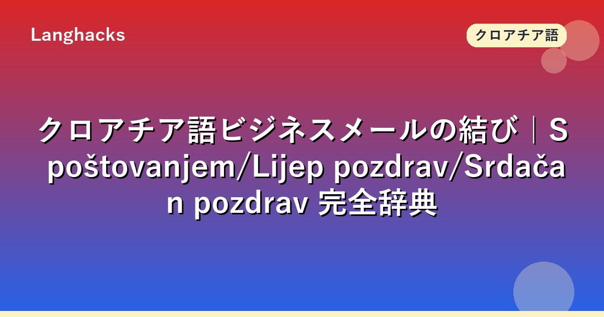 関連記事として件名50パターンと書き出し50フレーズとクロアチア語ビジネスメール総論を併読すると、結びまで含めた全体設計が完成します。