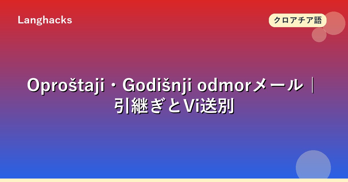 Oproštaji・Godišnji odmorメールはクロアチア職場の引継ぎ文化と夏季年休配慮を統合する作法です。