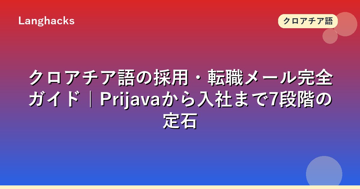 関連記事として応募メール完全テンプレ面接後ZahvalaPreporuka経由応募クロアチア語ビジネスメール総論を併読すると、採用プロセス全体が整理できます。