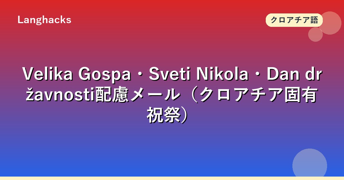 クロアチア固有のSveti Nikola(聖ニコラス・12/6)、Velika Gospa(聖母被昇天・8/15)、Dan državnosti(国家の日・5/30)等の宗教・国家祝祭メールを体系化します。