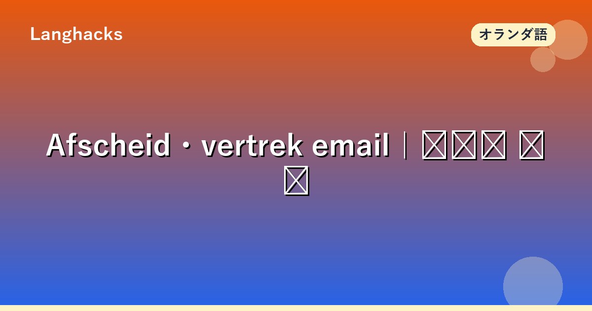 オランダの告別メールは「退職事実+感謝+引継ぎ案内+今後連絡先」の4要素で構成され、Afscheidsborrel が標準慣行です。