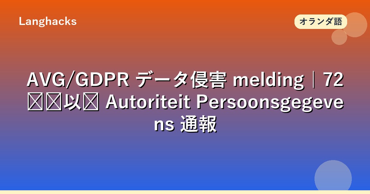 本記事は AVG art. 33・34 の通報フローと社内エスカレーションを反映した datalek melding メールを完全解説します。