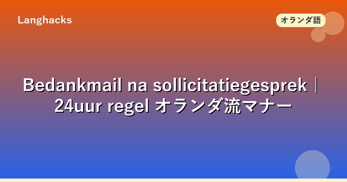 本記事はオランダ採用プロセスの「24uur regel」と各面接官への個別化テクニックを完全テンプレ化します。