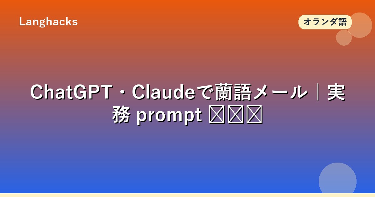 本記事はオランダ語メール用 AI プロンプトテンプレートと品質検証手法を完全解説します。