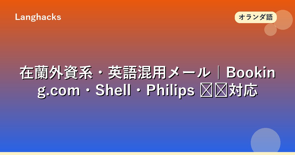 本記事は Booking.com・Shell・Philips・Unilever 等の在蘭多国籍企業対応メールを完全解説します。