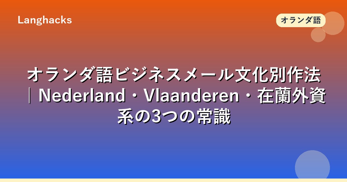 オランダ語ビジネスメールはNederland・Vlaanderen・在蘭外資系の3組織タイプで作法が大きく異なります。