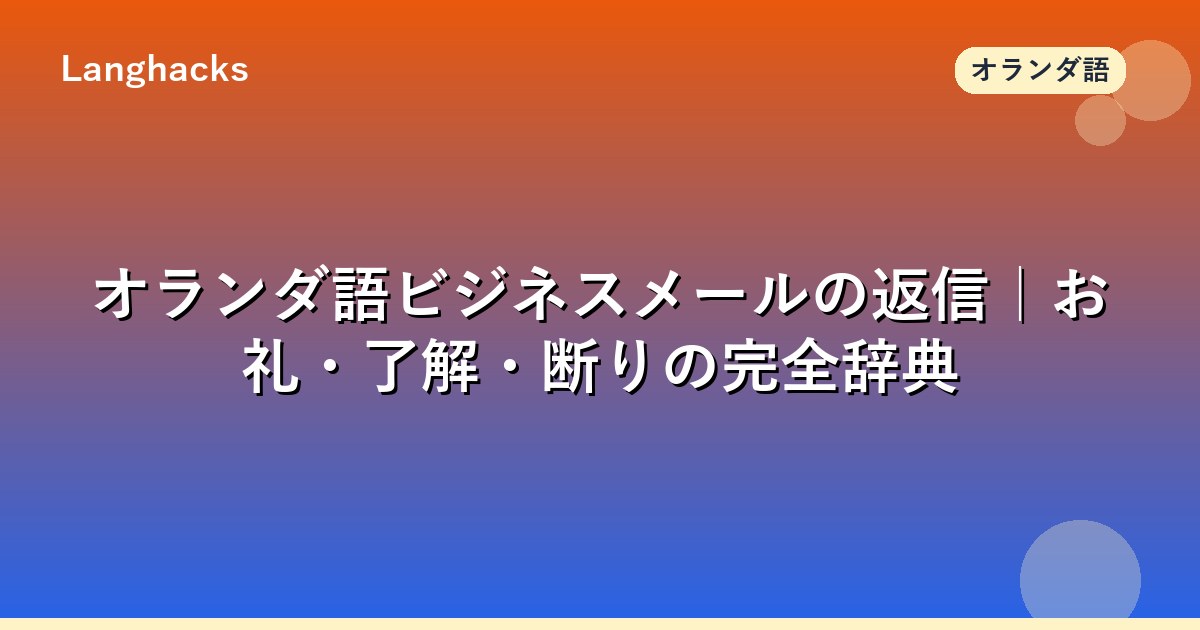 オランダ語ビジネスメールの返信|お礼・了解・断りの完全辞典