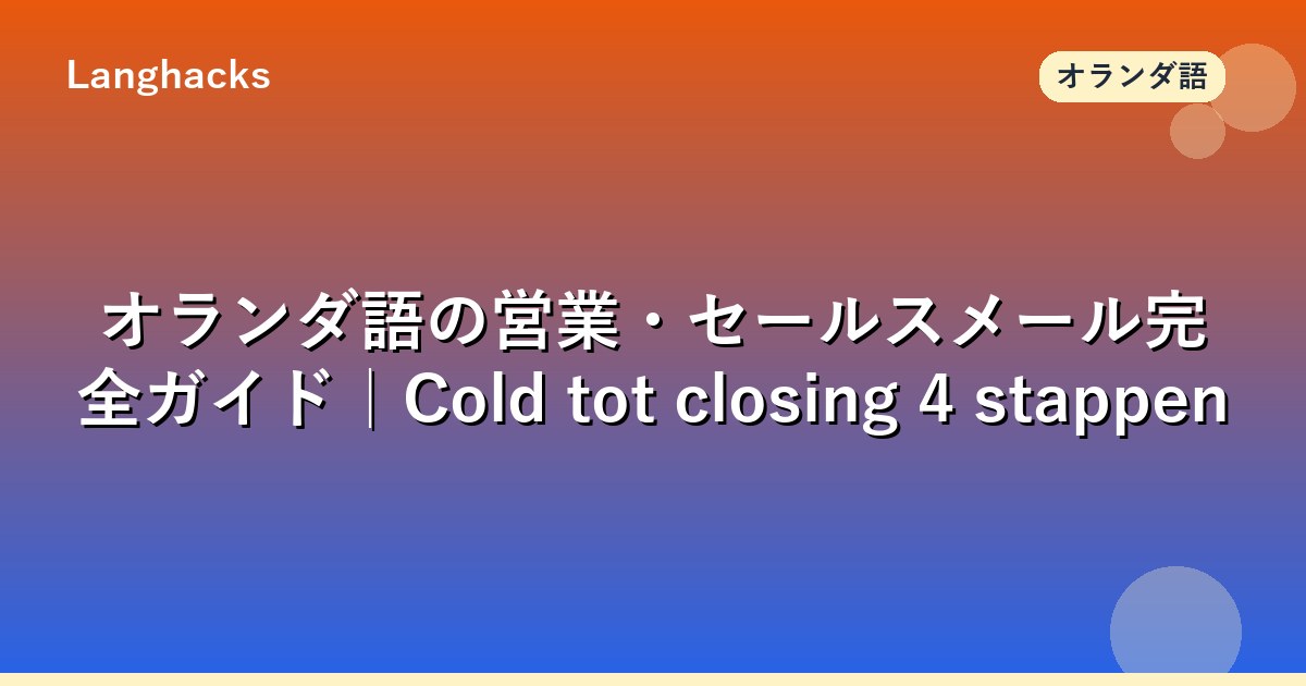 Cold emailの詳細はオランダB2B Cold Emailを、フォローアップはAntwoord uitblijven? Follow-up emailを参照してください。