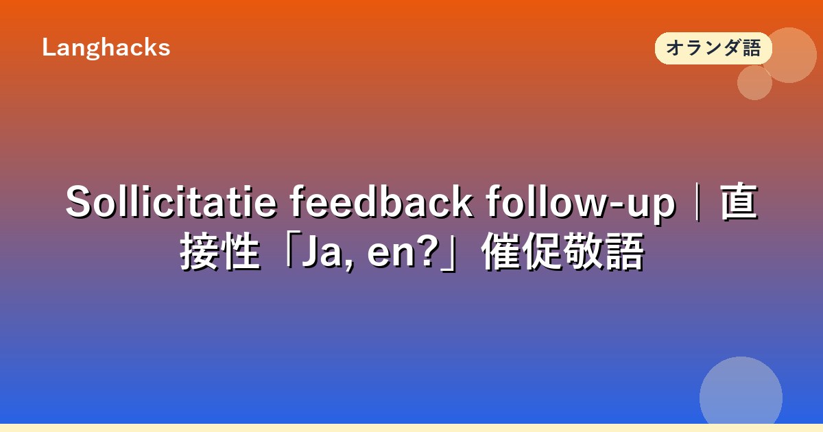 Sollicitatie feedback follow-up|直接性「Ja, en?」催促敬語
