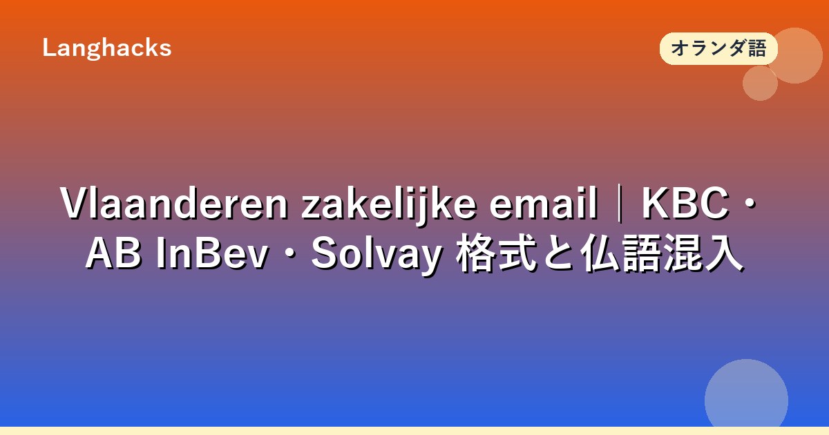 本記事は KBC・AB InBev・Solvay 等のベルギー Vlaanderen 企業対応 zakelijke email を完全解説します。