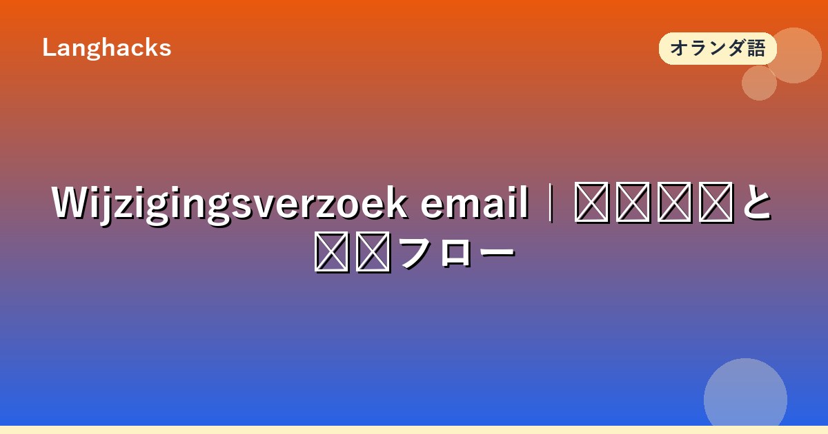 本記事は polderen 合議による change management プロセスを反映したオランダ式 wijzigingsverzoek メールを完全解説します。