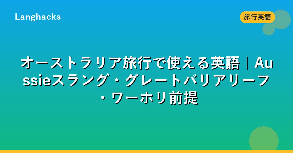 オーストラリア旅行は「Aussieスラング・カフェ文化・自然警告」の3点を押さえれば英語ストレスが激減する。