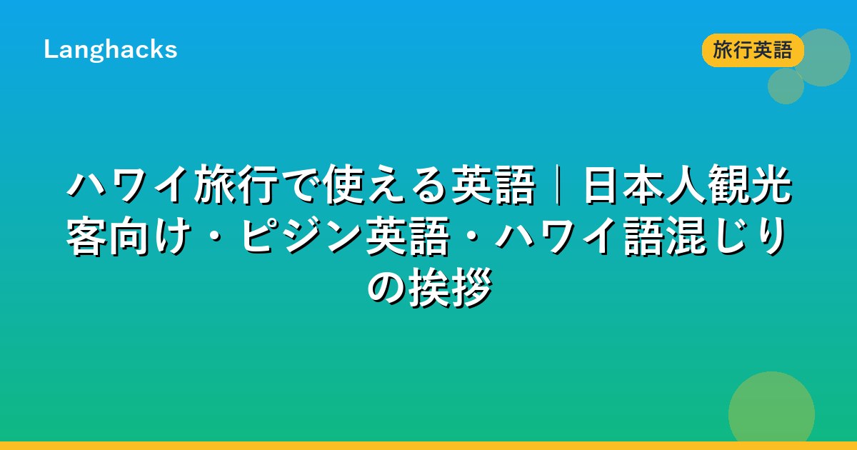 ハワイ語10選、ピジン英語10フレーズ、ロコモコ・ポケ注文、ルアウ参加英語まで網羅した。