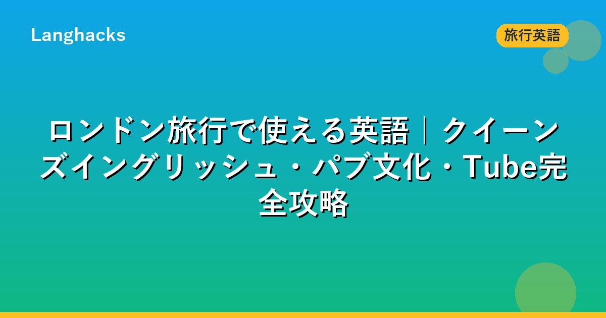 ロンドン旅行は「米英差・パブ文化・Cheers万能語」の3点を押さえれば英語ストレスがほぼ解消する。