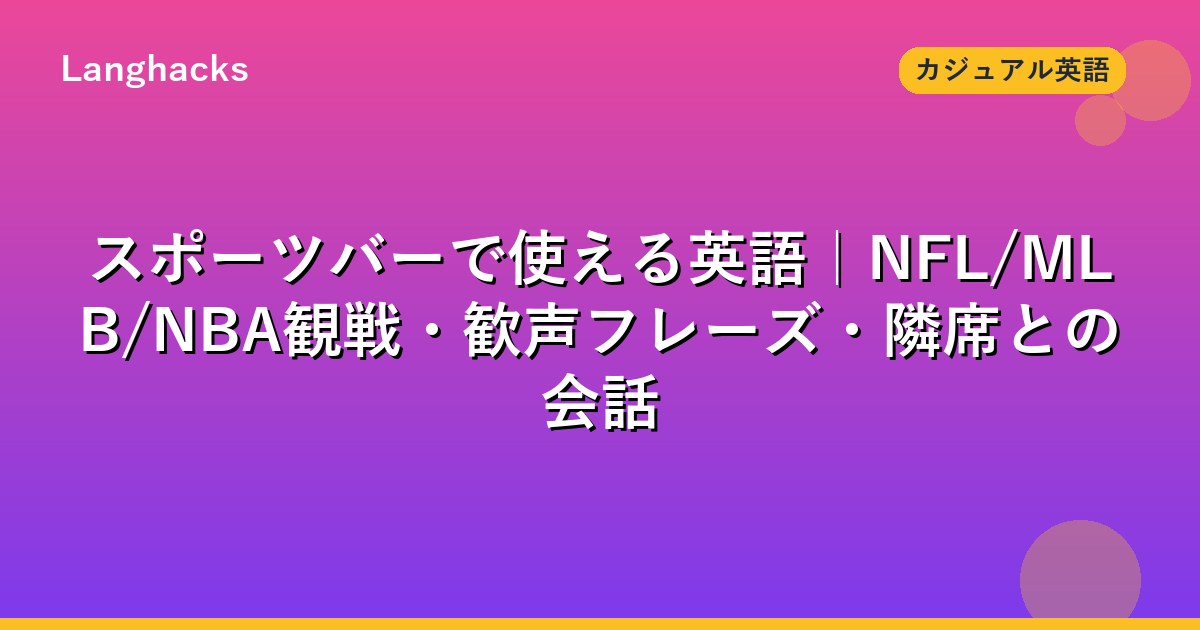 本記事はNFL・MLB・NBAの主要用語、歓声フレーズ、隣席との会話を一気通貫で解説する。30フレーズで現地常連と渡り合える。