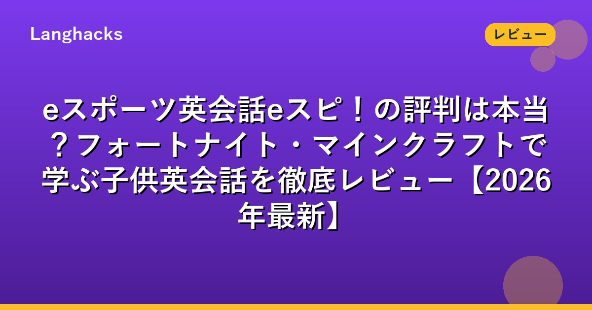 本記事はLanghacks(30言語以上の学習法を扱う多言語サイト)が、eスポーツ英会話「eスピ!」(ゲシピ株式会社)を、子供英会話・ゲーム英語・モチベーション設計の3つの観点から徹底的にレビューする決定版ガイドです。