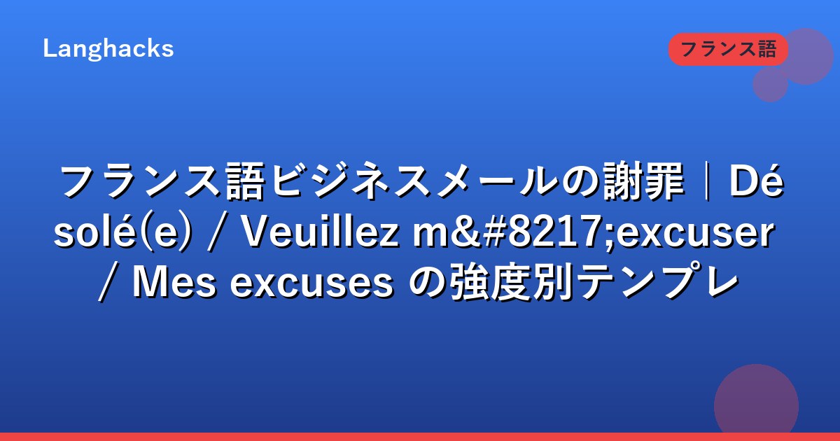フランス語ビジネスメールの謝罪|Désolé(e) / Veuillez m’excuser / Mes excuses の強度別テンプレ
