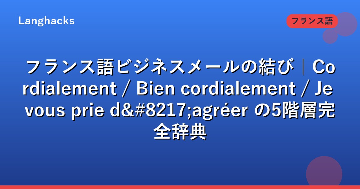 フランス語ビジネスメールの結び|Cordialement / Bien cordialement / Je vous prie d’agréer の5階層完全辞典