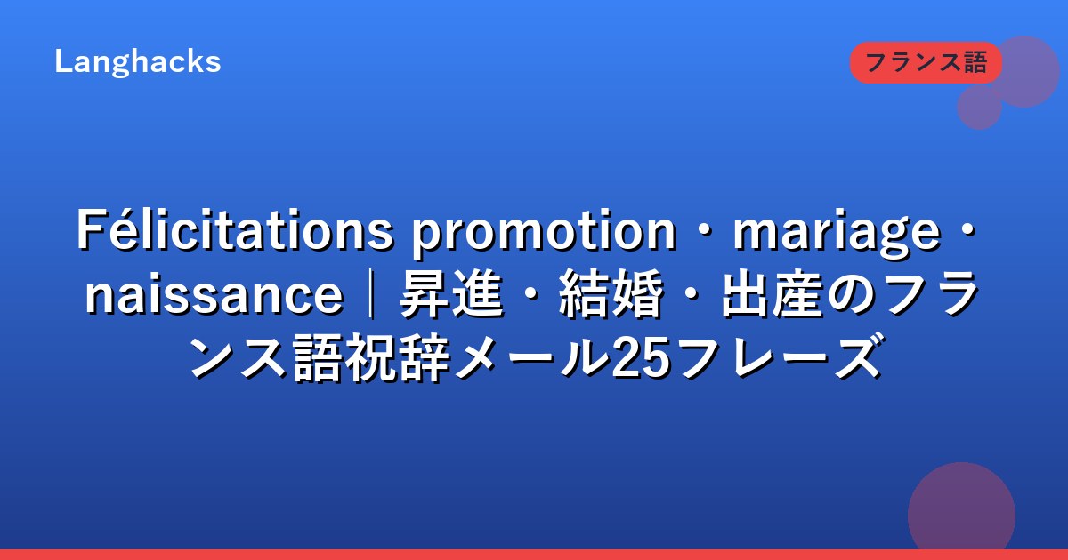 Félicitations promotion・mariage・naissance|昇進・結婚・出産のフランス語祝辞メール25フレーズ