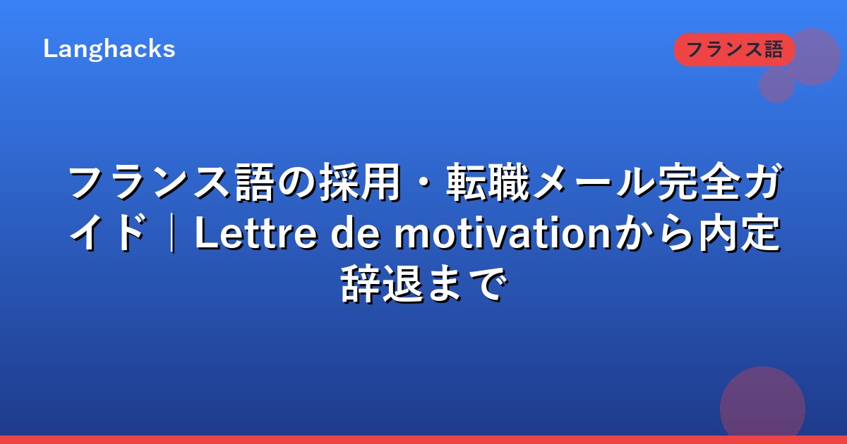 フランス語の採用・転職メール完全ガイド|Lettre de motivationから内定辞退まで
