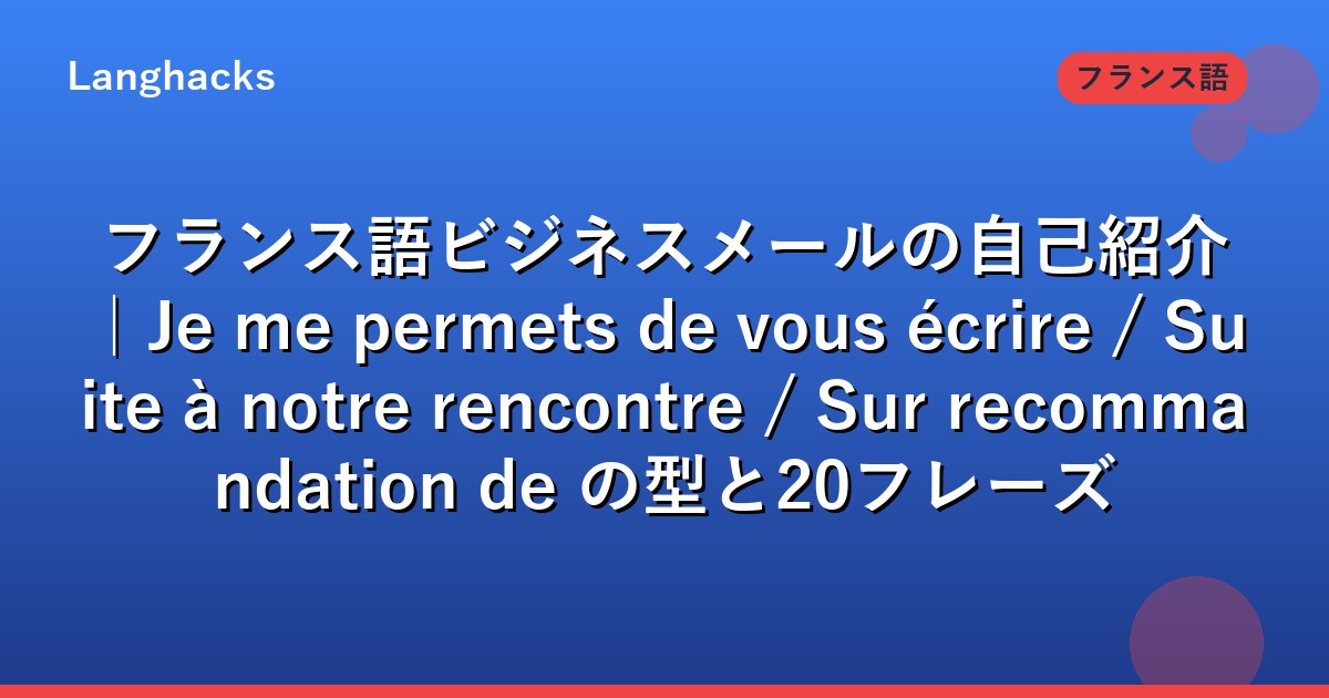 関連する詳細はフランス語ビジネスメールの書き出し50フレーズでさらに深掘りできます。