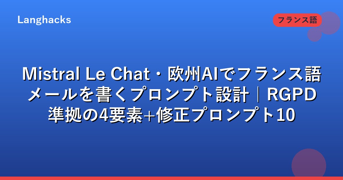 本記事はMistral Le Chatで仏語メールを書くプロンプト設計を「Rôle・Contexte・Tâche・Style」の4要素と修正プロンプト10選で整理します。chat.mistral.aiでの実装ガイドです。