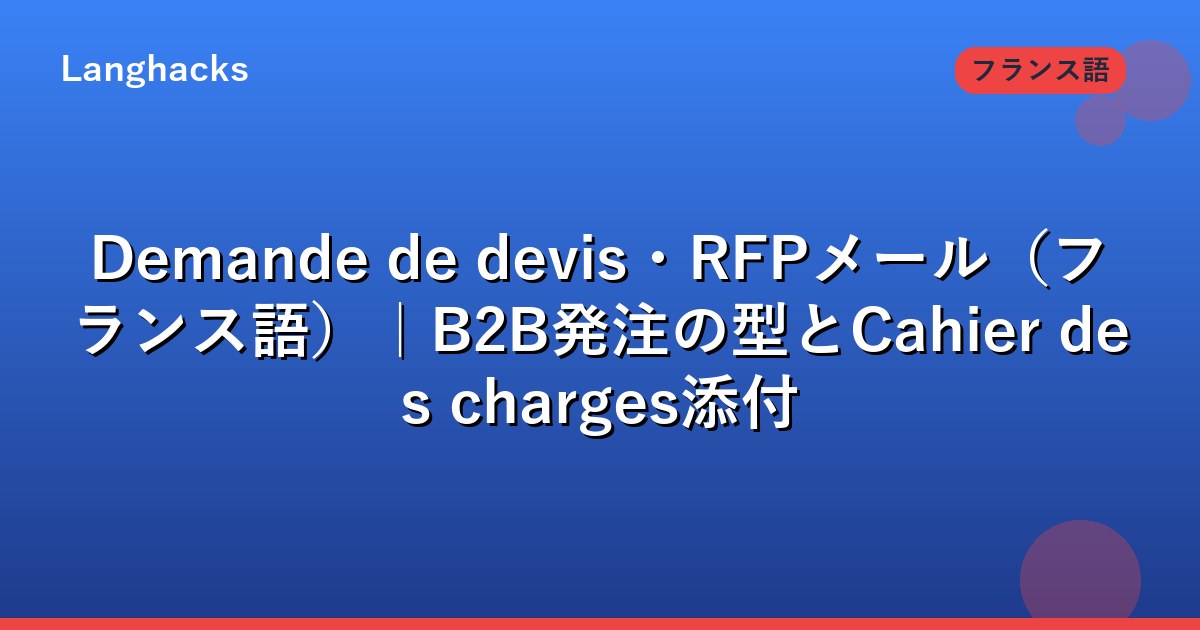 本記事は各段のメール設計、Cahier des chargesの必須構成、評価基準の明示、公的調達特有のプロセスを整理します。TotalEnergies、Airbus、Sanofiの購買部、中小企業購買担当、French Tech BizDev向けの実装ガイドです。