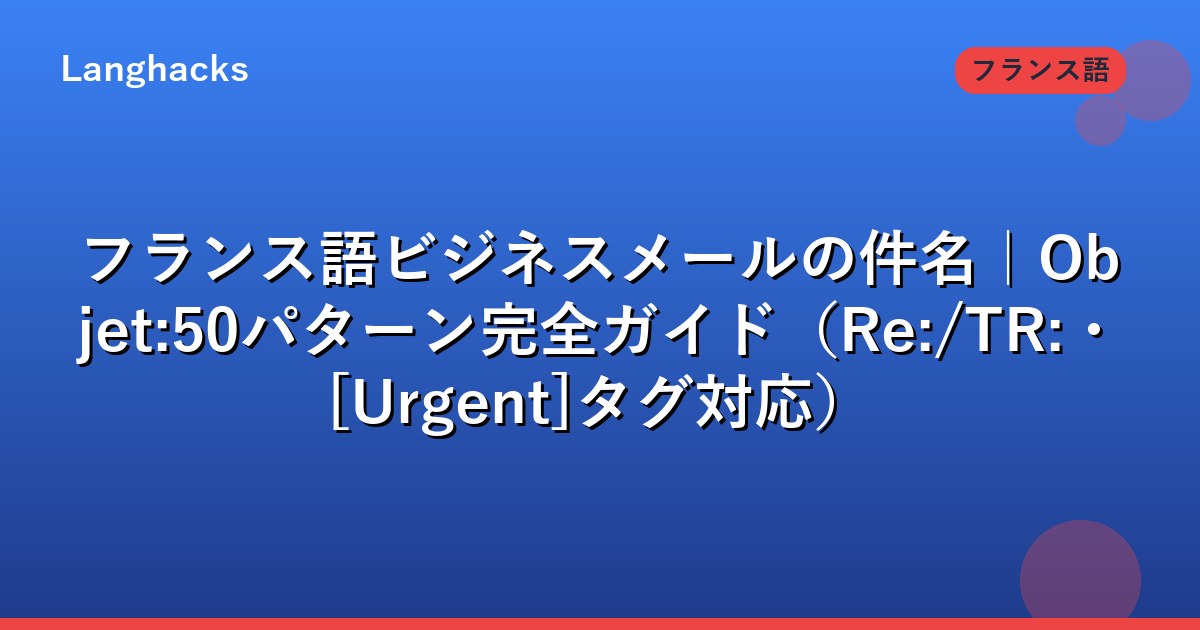 「Objet: の書き方」「[Urgent]タグを付けていいか」「RE: と TR: の使い分け」といった仏語件名特有の悩みを50パターンで整理します。