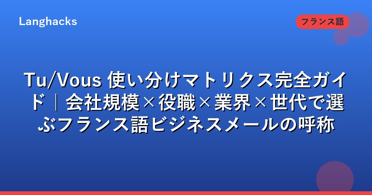 本記事はTu/Vousの判断を「会社規模・役職・業界・世代」の4軸マトリクスで整理します。新任上司からTuが来た時、他部署への一斉送信の時、仏語圏4地域との連携時の実装指針です。
