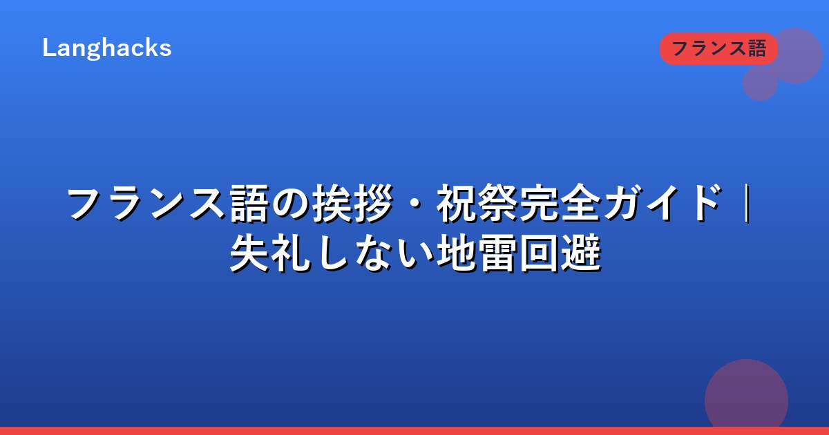 本稿ではフランスの年間カレンダーと主要祝祭、Saint-Valentin・Pâques・Quatorze juillet・La Fête de la Musique・Noël・Toussaint等の挨拶テンプレ、誕生日・お祝い、お悔やみ、挨拶NG10までを実例で網羅する。