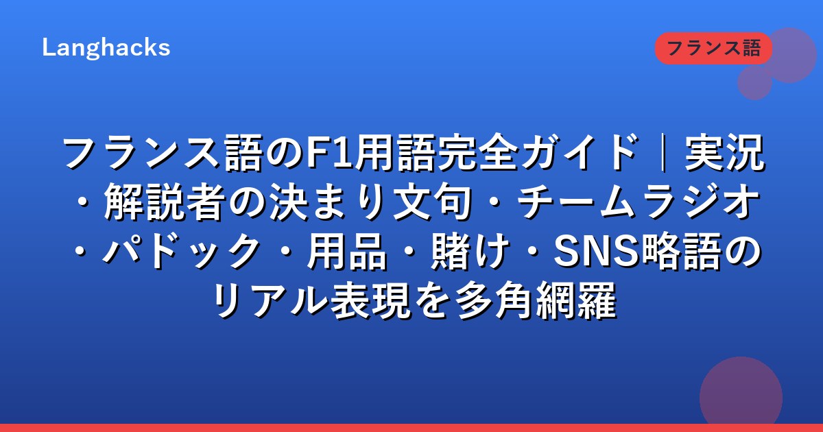 本記事では実況・解説・チームラジオ・パドック・用品・賭け・SNSまで、フランスのF1語彙を多層的に網羅します。