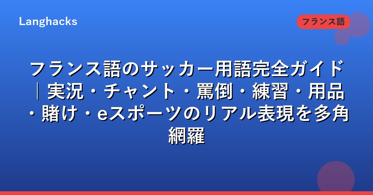 本記事では、観戦・実況・練習・店舗・治療・賭け・ゲーム・SNSまで、現地のフランス語サッカー語彙を網羅します。