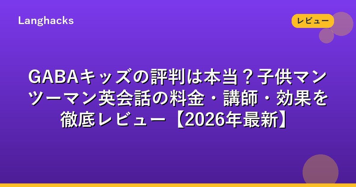 本記事はLanghacks(30言語以上の学習法を扱う多言語サイト)が、大人向けマンツーマン英会話で実績を積み上げてきたGABAの子供版「GABAこどもマンツーマン英会話(GABAキッズ)」を、保護者目線で徹底レビューする決定版ガイドです。
